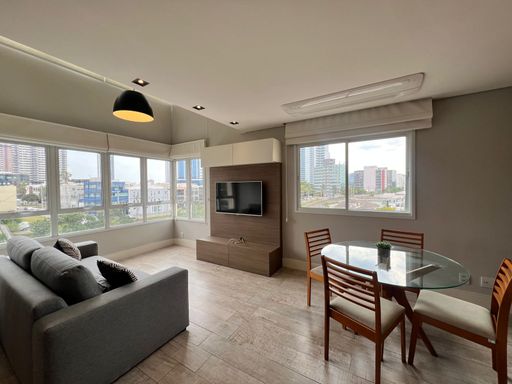 Lindo apartamento mobiliado para locação ou venda no Novare, totalmente mobiliado e decorado. Com uma vista magnífica da Castelo Branco e do Residencial Um, o imóvel possui 50m², 1 dormitório e 1 vaga de garagem, com ar condicionado. Perfeito para quem busca conforto e estilo em uma localização privilegiada! Condomínio de alto padrão no coração de Alphaville! Completo com espaços VIP para receber seus convidados, piscinas coberta e descoberta, e uma localização incrível. A poucos passos de comércios, colégios, faculdades, restaurantes e tudo o que você precisa. Conforto, praticidade e qualidade de vida em um só lugar! Locação R$ 4.900,00 + 1.000,00 condomínio e iptu/mês Agende sua visita! Não perca essa oportunidade!! Contato 11 94986 3241 Creci 039844