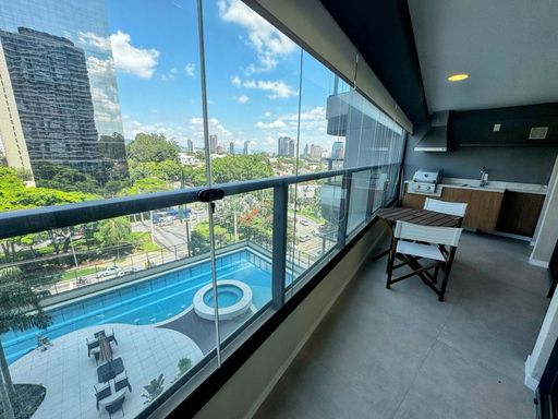 Lindo apartamento mobiliado para locação ou venda no Novare, totalmente mobiliado e decorado. Com uma vista magnífica da Castelo Branco e do Residencial Um, o imóvel possui 50m², 1 dormitório e 1 vaga de garagem, com ar condicionado. Perfeito para quem busca conforto e estilo em uma localização privilegiada! Condomínio de alto padrão no coração de Alphaville! Completo com espaços VIP para receber seus convidados, piscinas coberta e descoberta, e uma localização incrível. A poucos passos de comércios, colégios, faculdades, restaurantes e tudo o que você precisa. Conforto, praticidade e qualidade de vida em um só lugar! Locação R$ 4.900,00 + 1.000,00 condomínio e iptu/mês Agende sua visita! Não perca essa oportunidade!! Contato 11 94986 3241 Creci 039844