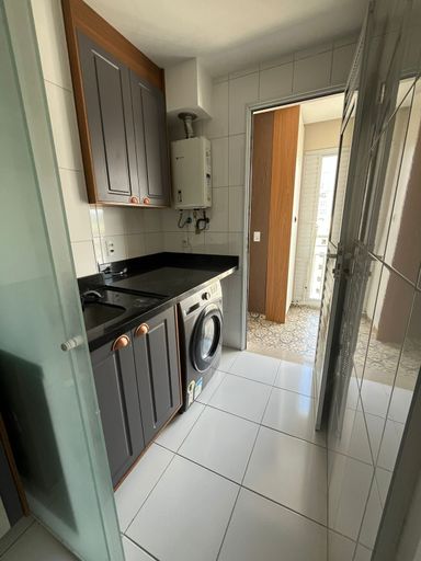 Cozinha e lavanderia com planejados em laca de alto padrão