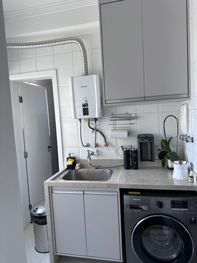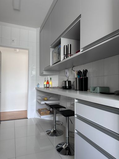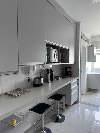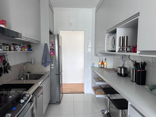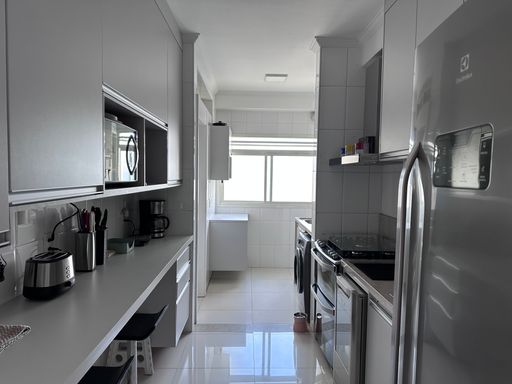 A cozinha é planejada, funcional e muito bem distribuída. A área de serviço é independente e conta com banheiro para funcionário.