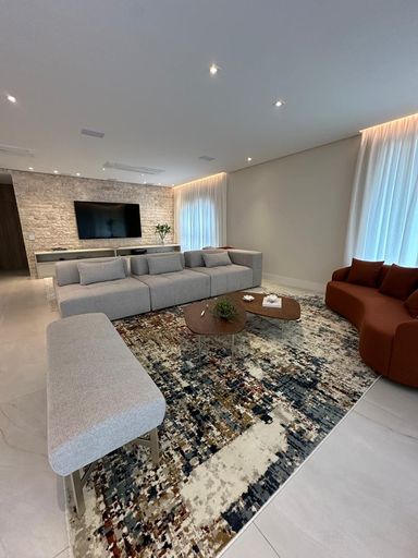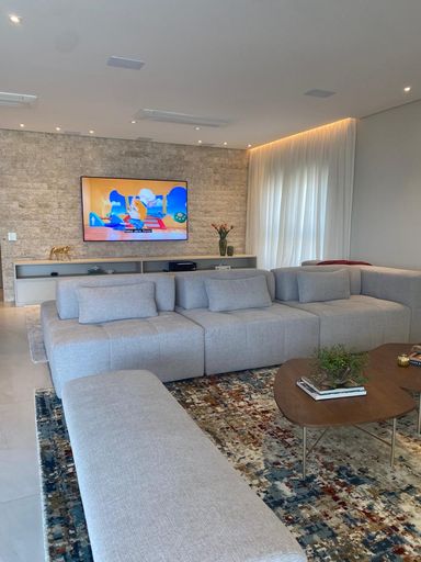 • Amplo living com integração entre sala de estar, jantar e TV