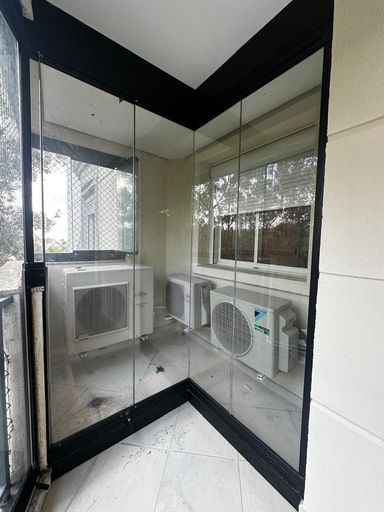 Varanda envidraçada com estrutura pronta para churrasqueira, ideal para momentos de lazer e convivência.