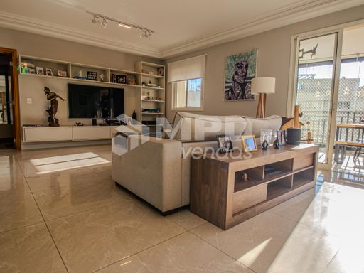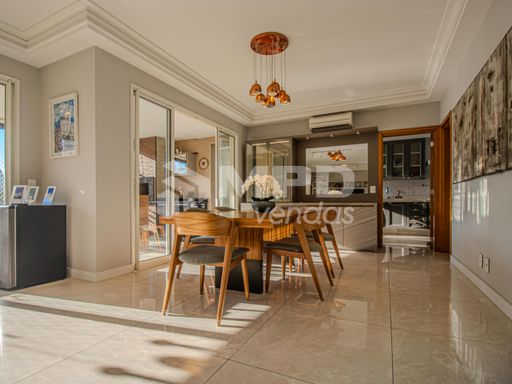 Trata-se de um apartamento com 201 m², com 03 dormitórios, sendo 1 suíte , amplo living, ar condicionado, cozinha com armários planejados, wc de serviço, área de serviço com armários planejados, depósito no apto, escritório, lavabo, varanda gourmet com fechamento em vidro e persianas.