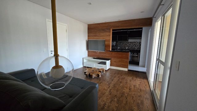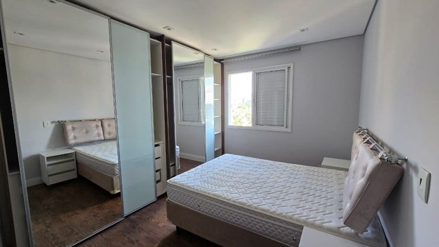 Excelente apartamento mobiliado, com 80 m², vista para o condomínio Alpha Plus, em prédio familiar e com lazer completo.