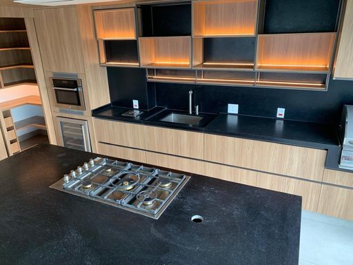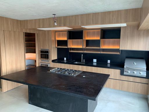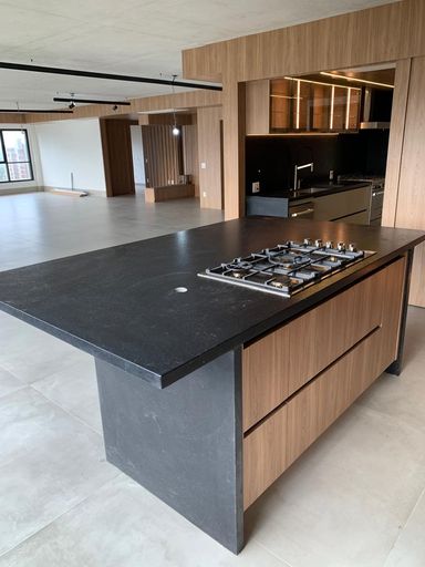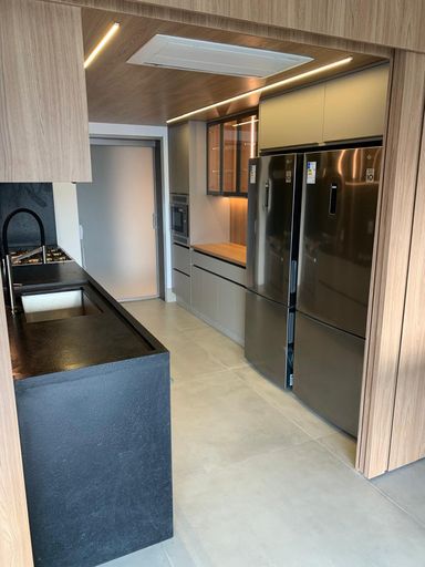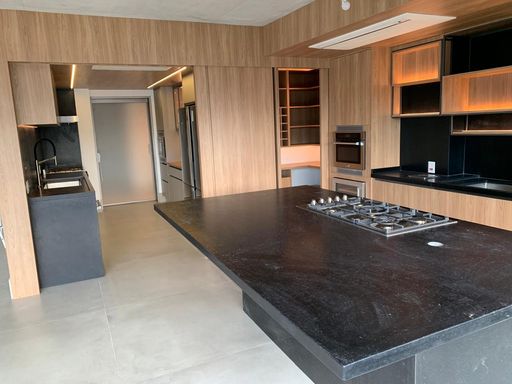 Ilha gourmet com cooktop e torre de fornos