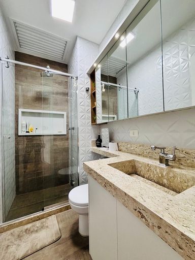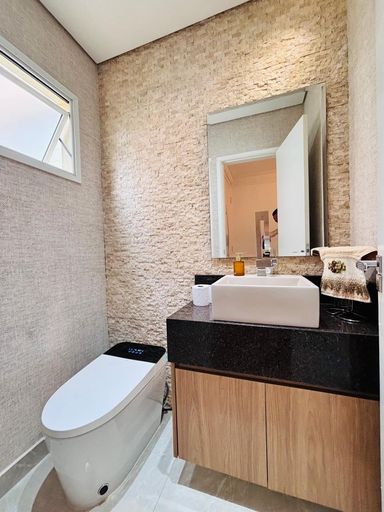 A área íntima conta com três dormitórios iluminados naturalmente, incluindo uma suíte aconchegante, perfeita para relaxar ao final do dia. O escritório, versátil, pode ser facilmente adaptado como um quarto adicional, acompanhando as necessidades da família. A cozinha contemporânea convida a explorar novos sabores, o lavabo se destaca pelo toque tecnológico com vaso automatizado, e a lavanderia planejada, junto à espaçosa despensa, traz mais funcionalidade ao dia a dia.