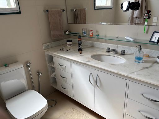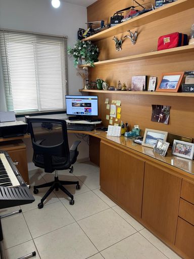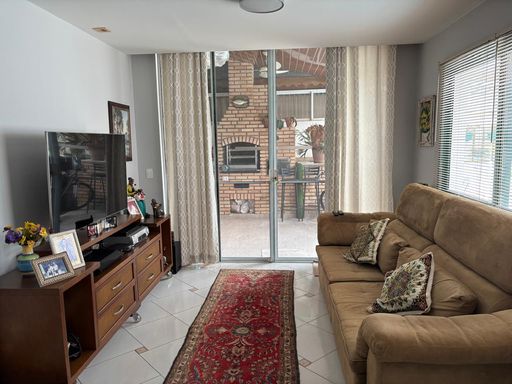 O imóvel conta com 3 dormitórios, sendo 1 suíte com armários, além de escritório, ideal para home office. Os ambientes são amplos e bem distribuídos, com sala de estar, sala de TV e sala de jantar integradas à área gourmet, equipada com churrasqueira, armários e pia, perfeita para receber amigos e familiares, com agradável integração à piscina.