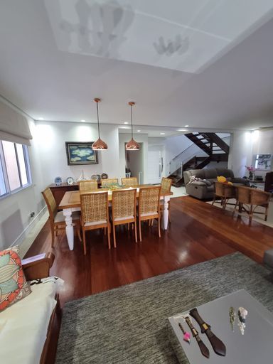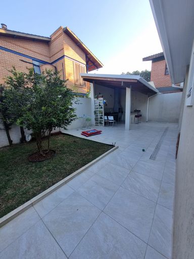 Na área externa, o imóvel possui quintal com jardim e agradável espaço gourmet, perfeito para reunir família e amigos.