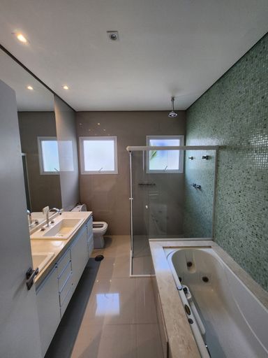 4 suítes climatizadas, sendo a master com armários, closet e banheira de hidromassagem