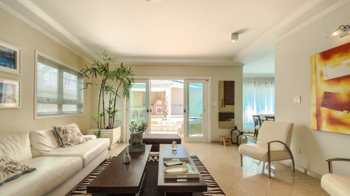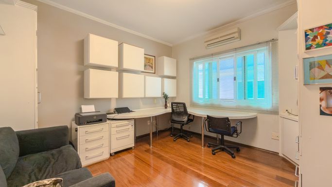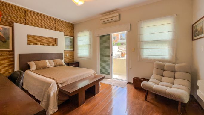 Em um terreno de 377 m², com 348 m² de área construída, a casa dispõe de 4 dormitórios, sendo 2 suítes e 1 suíte americana, com destaque para a suíte master com closet.