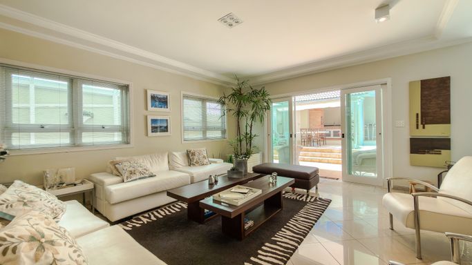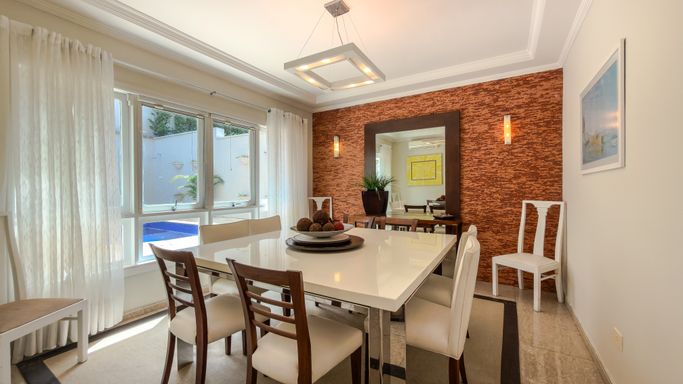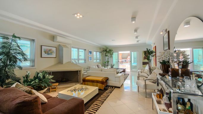 Os ambientes sociais são amplos e bem integrados, com sala para 3 ambientes, lavabo, escritório e sala íntima de TV, proporcionando funcionalidade e conforto para toda a família.
