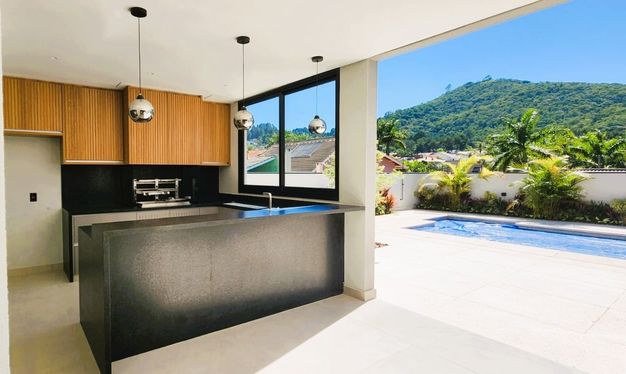 A área gourmet, integrada à área externa, é um destaque à parte: totalmente planejada com armários e equipamentos Polytec, infraestrutura para instalação de chopeira e uma vista encantadora.