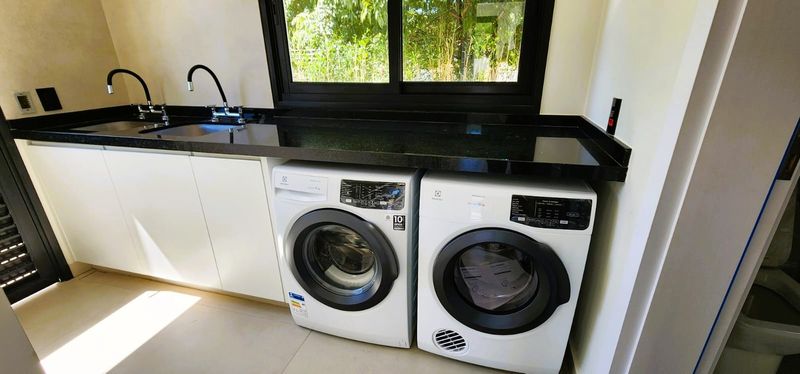 O imóvel dispõe de ar-condicionado em todas as suítes, sala e escritório, infraestrutura para sala íntima, automação, porcelanatos de primeira linha, caixa d’água de 3.000 litros, aquecimento solar com boiler de 600 litros, telhado com isolamento térmico e geração de energia fotovoltaica, unindo conforto, eficiência e sustentabilidade.