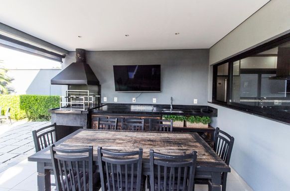 A casa conta com móveis planejados da ID Móveis, referência em alto padrão em Alphaville.