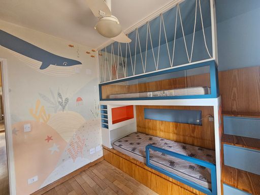 Dispõe ainda de lavabo, cozinha espaçosa, lavanderia e suíte de serviço, garantindo funcionalidade e privacidade no dia a dia.