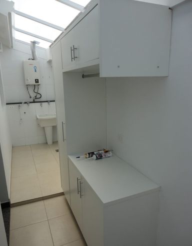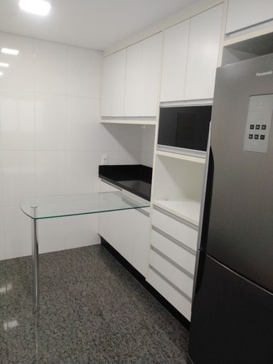 Cozinha equipada com armários, e um escritório, ideal para trabalho remoto ou estudo.