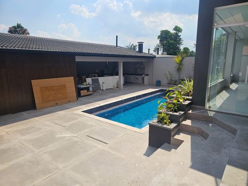Para desfrutar de momentos ao ar livre, a casa conta com uma espaçosa varanda gourmet equipada com churrasqueira, forno de pizza, cozinha de apoio e banheiro. A piscina completa o cenário, proporcionando lazer e bem-estar em um ambiente convidativo.