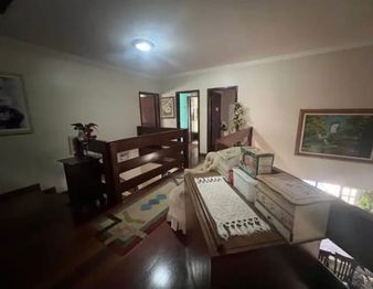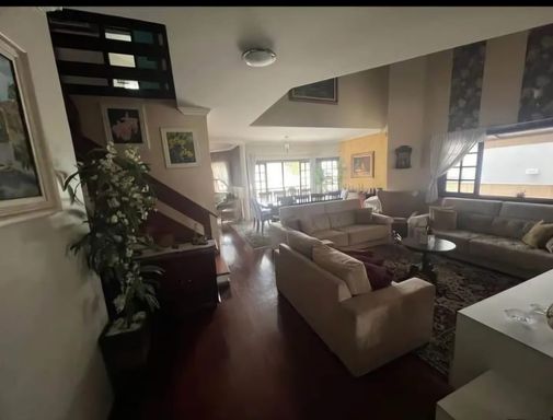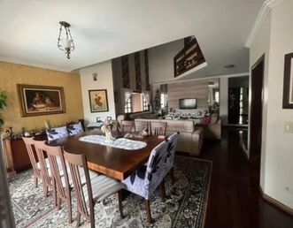 • Living imponente com pé-direito alto e 3 ambientes integrados — sala de estar, sala de lareira e sala de jantar, que proporcionam elegância e harmonia aos momentos em família.